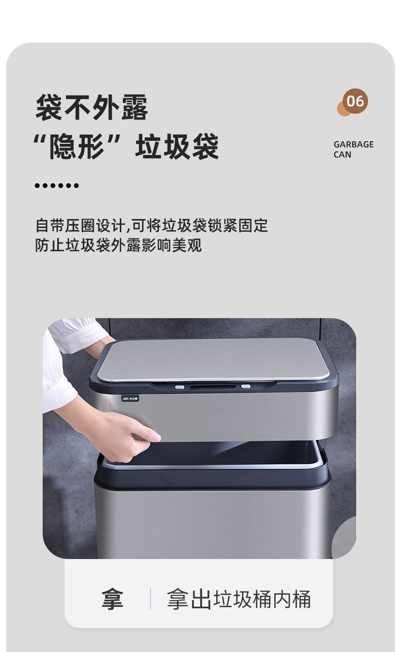 公司創(chuàng)立“潔安惠”品牌(英文“JAH”),正式進(jìn)軍品牌市場(chǎng),以智能感應(yīng)垃圾桶這一產(chǎn)品為主要載體,將家居生活同智能化完美結(jié)合。經(jīng)過(guò)潔安惠人鍥而不舍的努力,公司高端垃圾桶產(chǎn)品線不斷擴(kuò)展與延伸,目前已發(fā)展成為國(guó)內(nèi)知名的高端和智能垃圾桶生產(chǎn)商及品牌商。